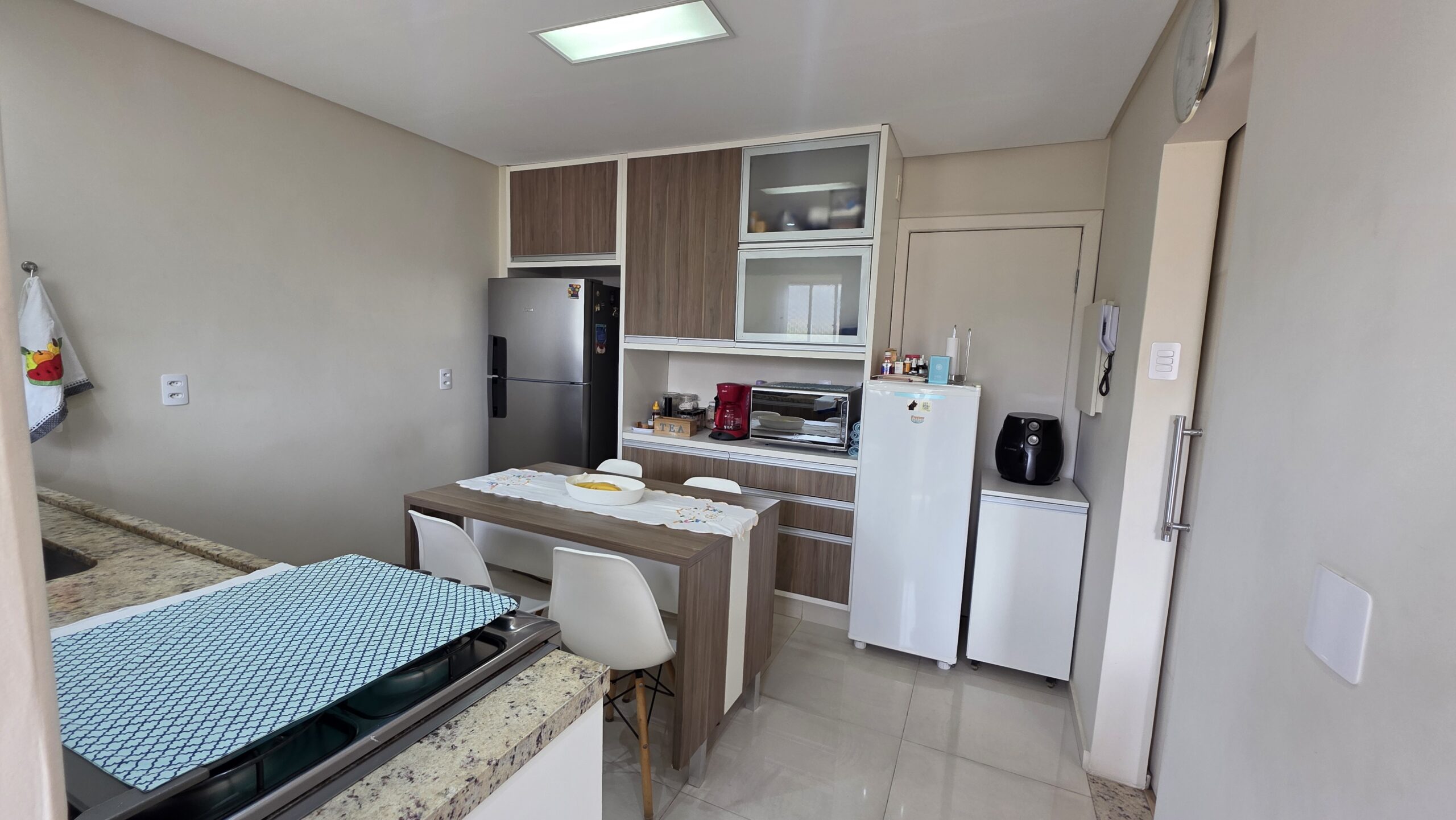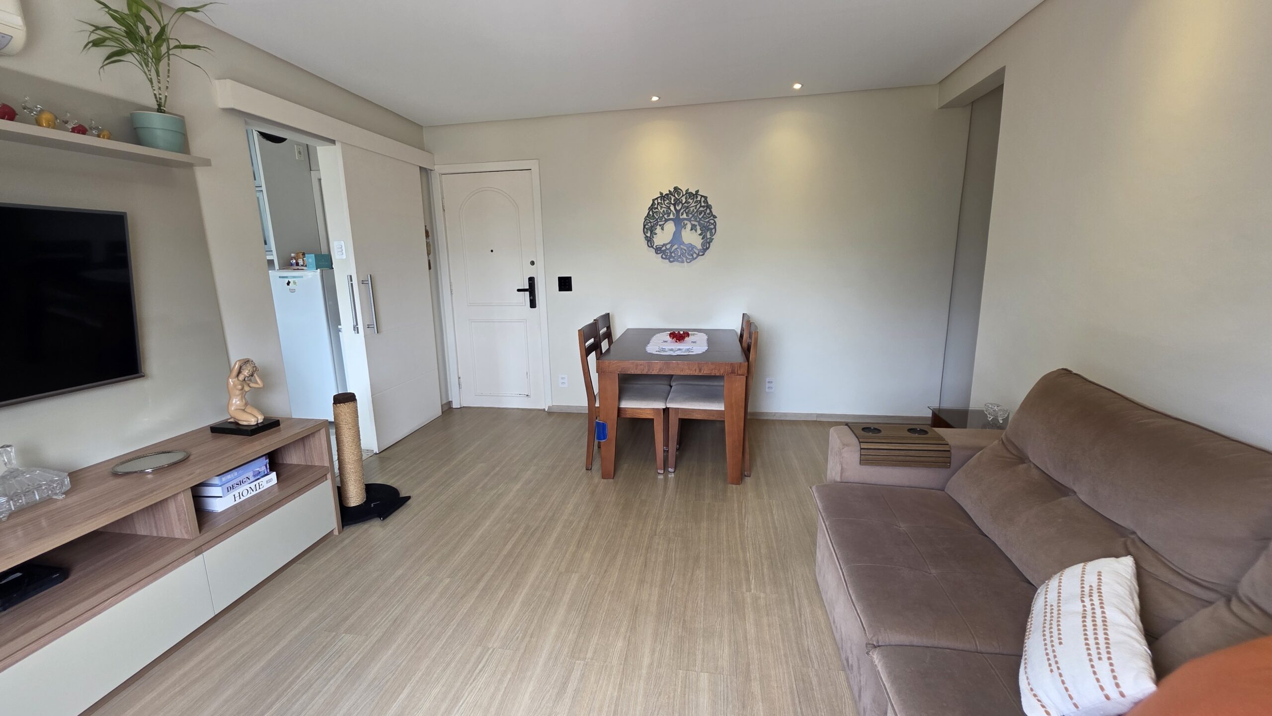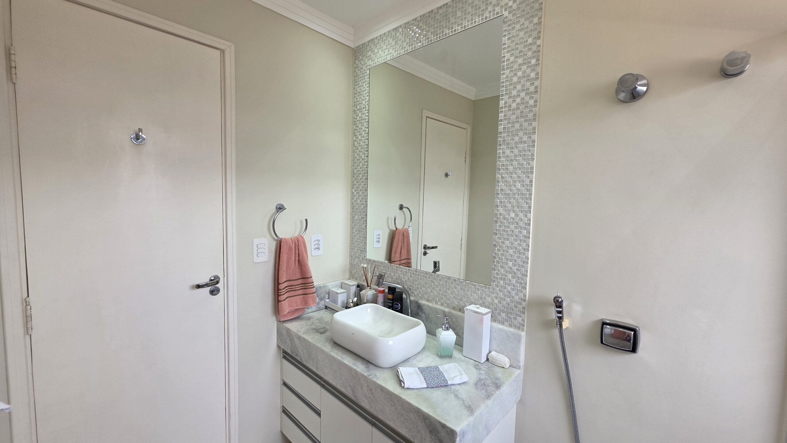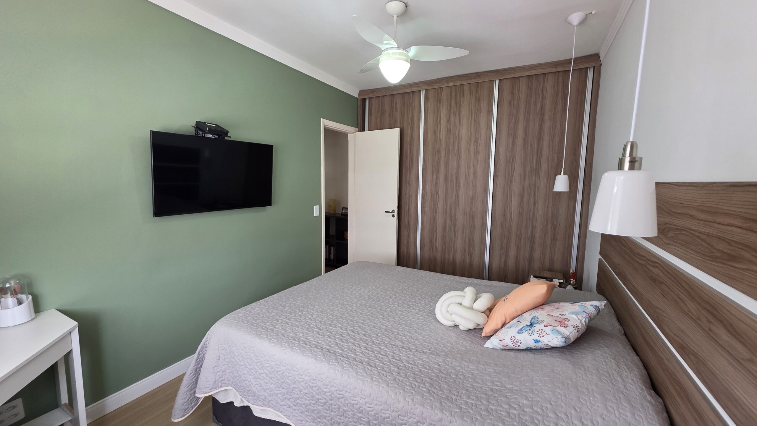 Apartamento belíssimo com sala para dois ambientes interruptor smart e fechadura digital, dois dormitórios com armários planejados, banheiro social, cozinha planejada rica em armários, área de serviço com banheiro. Prédio de elevador, reconhecimento facial, uma vaga de garagem.