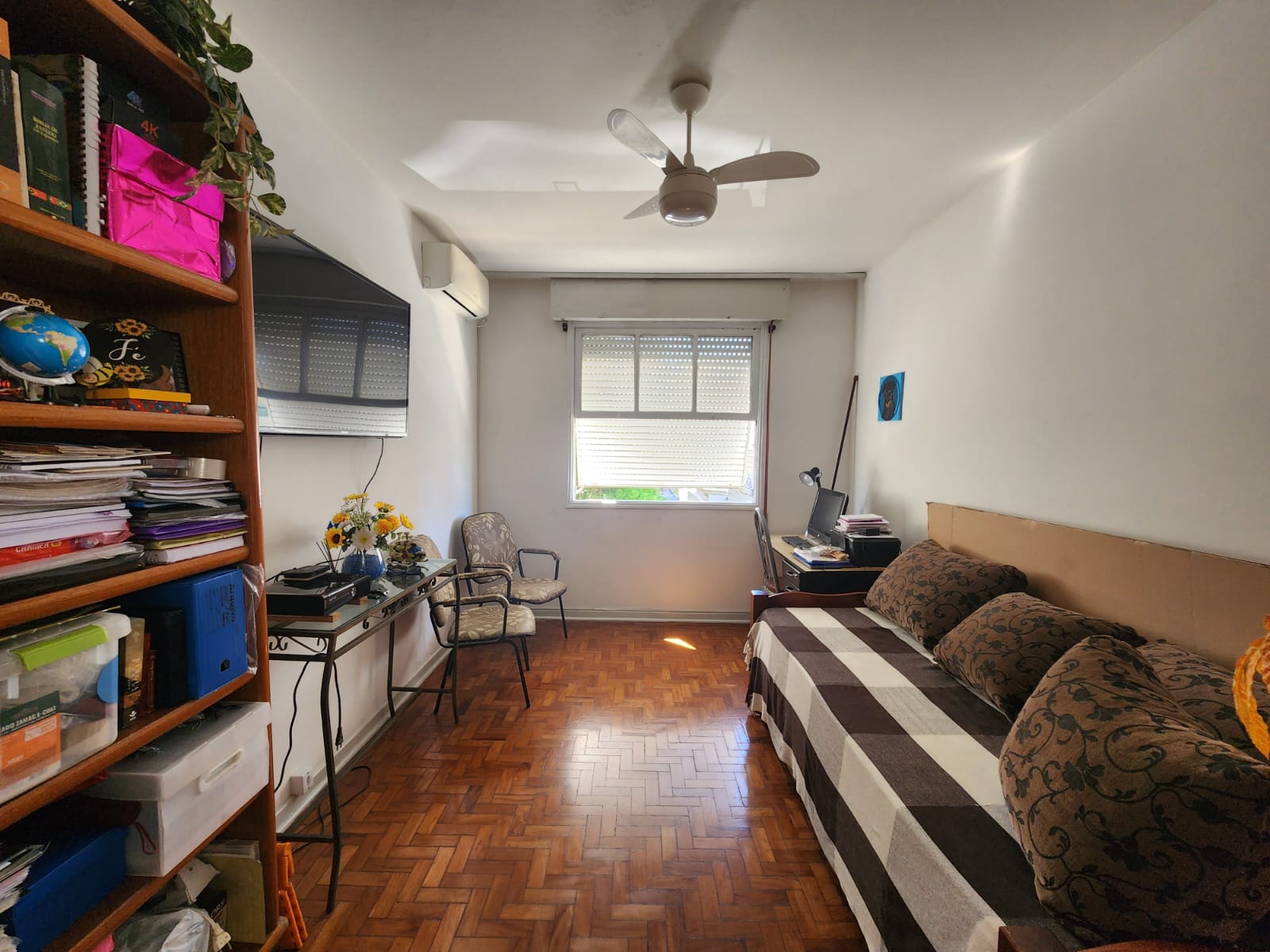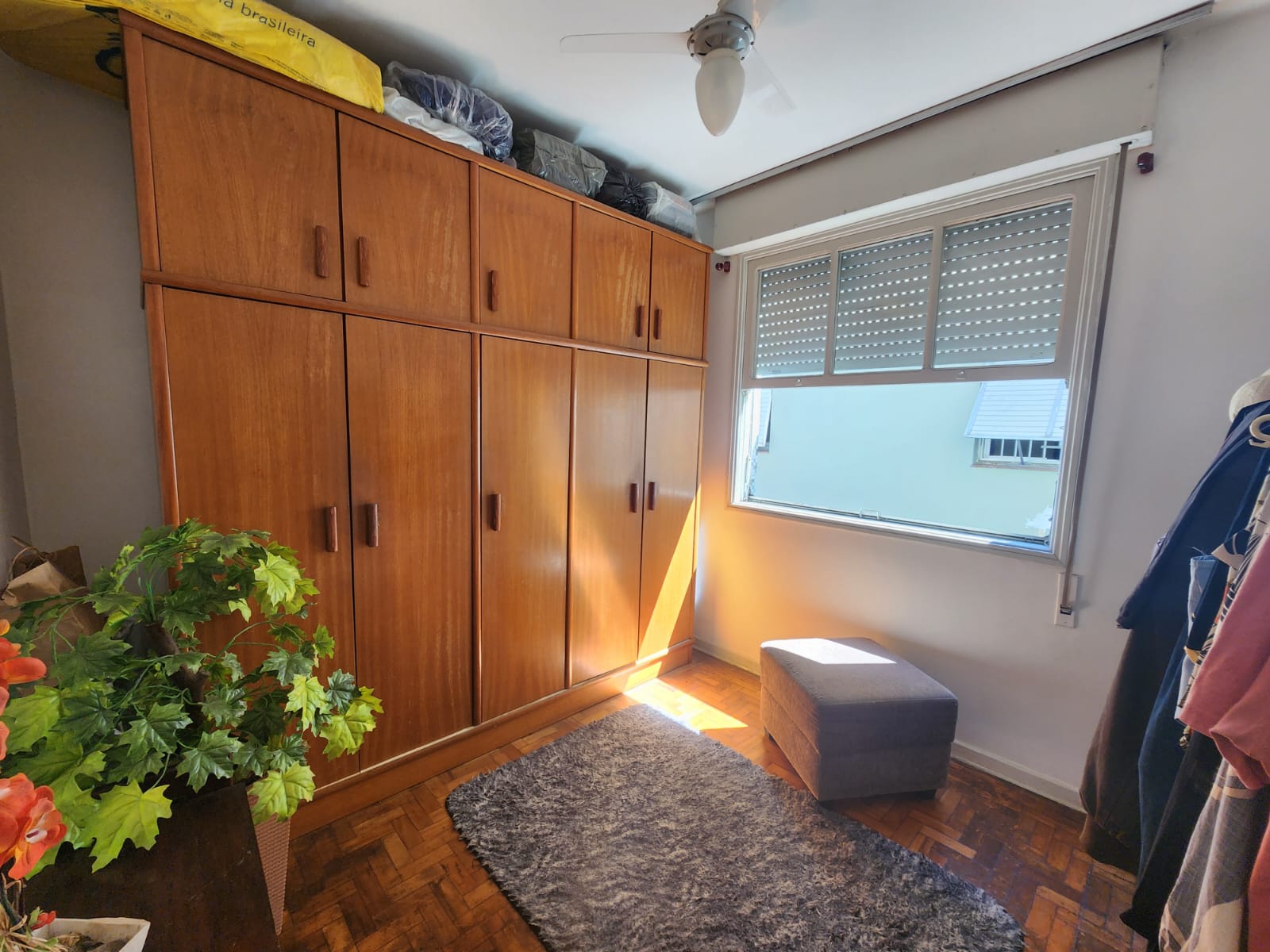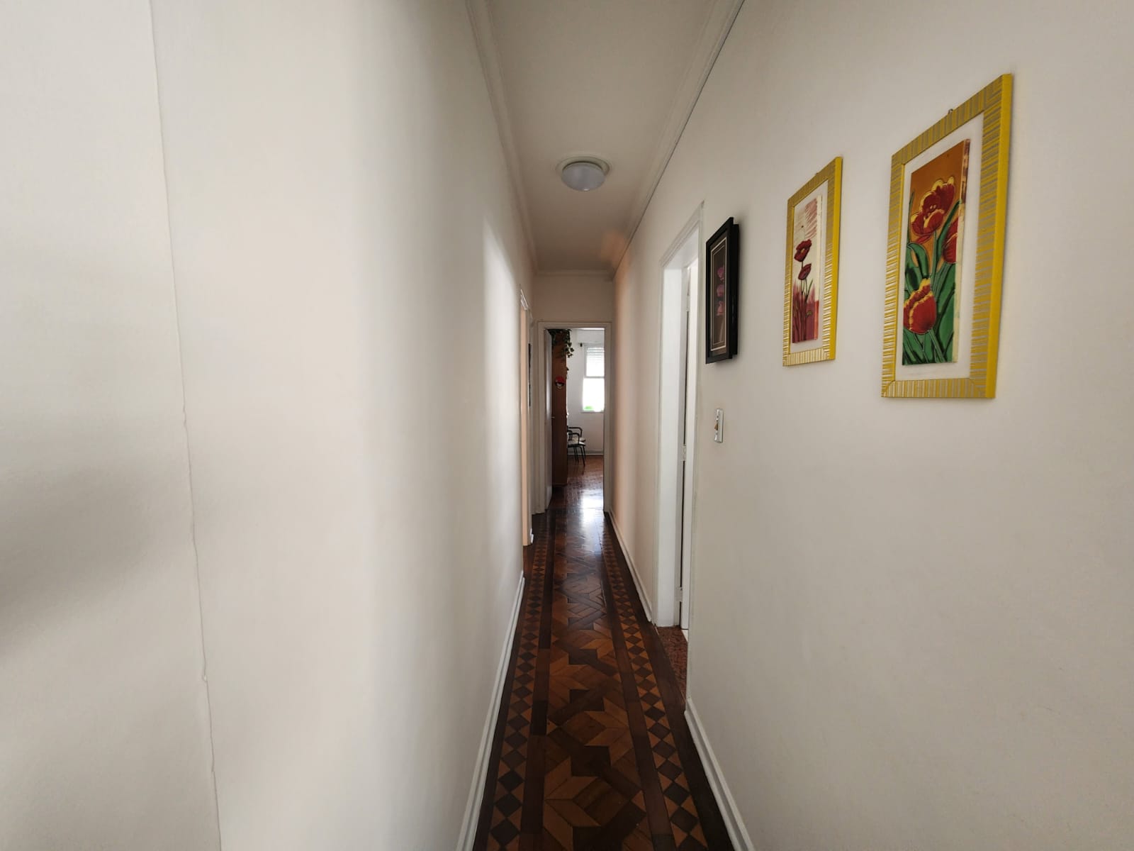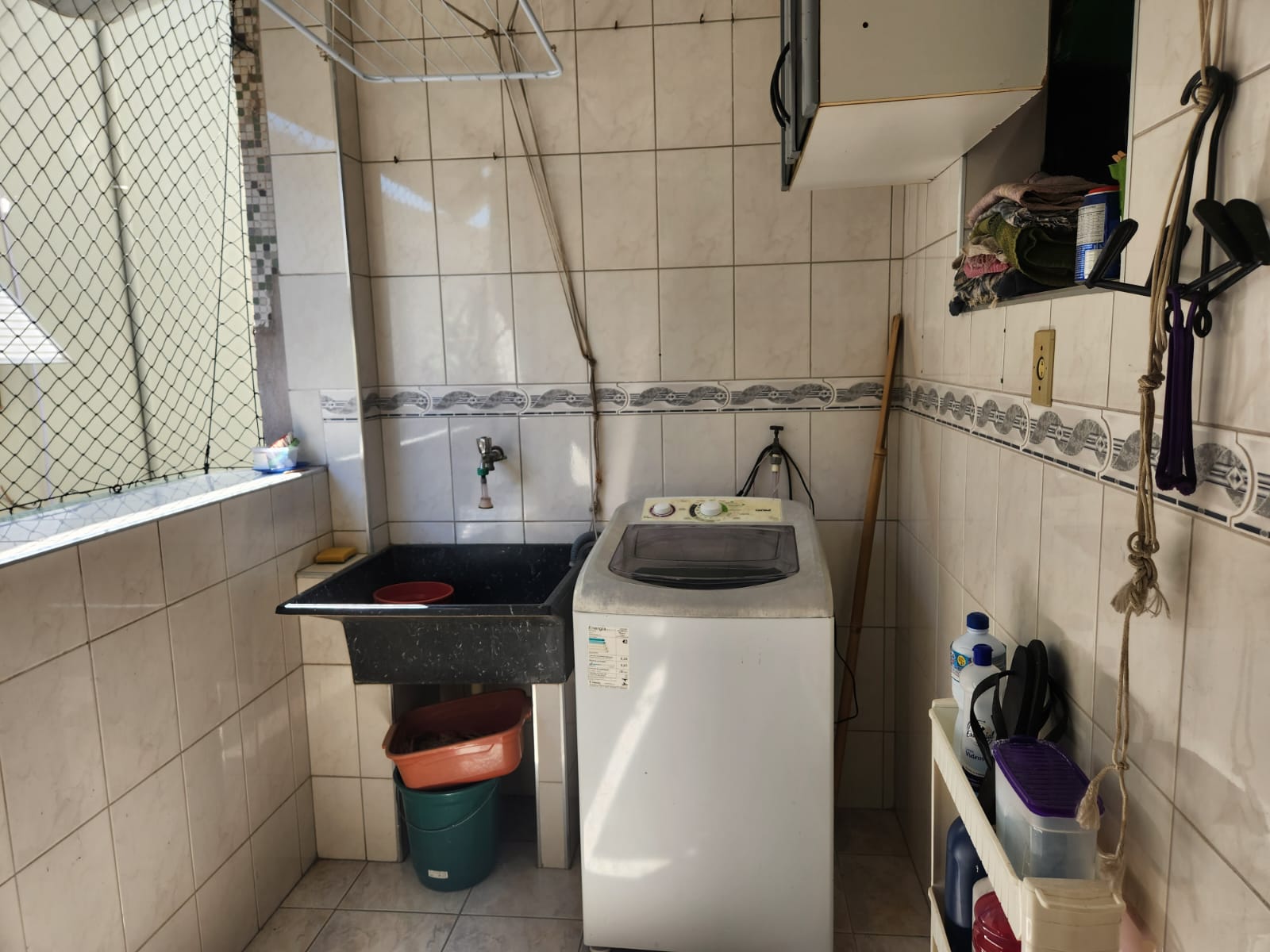 Sala para dois ambientes, três dormitórios sendo dois de frente um com suíte, banheiro social, cozinha com armários, área de serviço com banheiro, garagem coletiva suficiente, prédio de escada segundo andar de frente.
