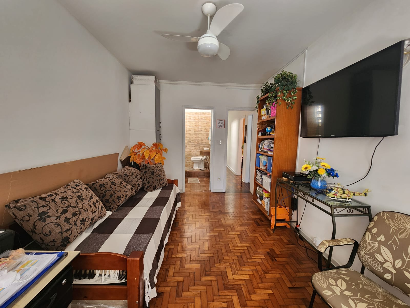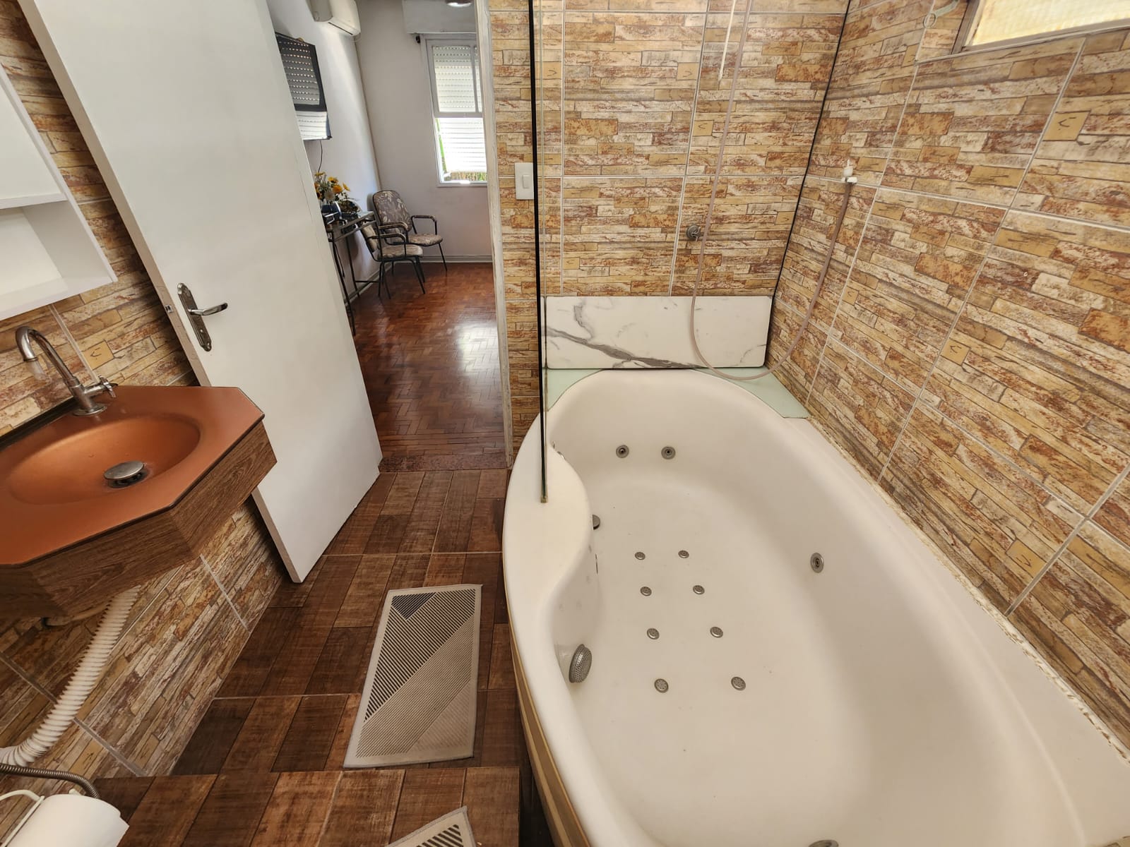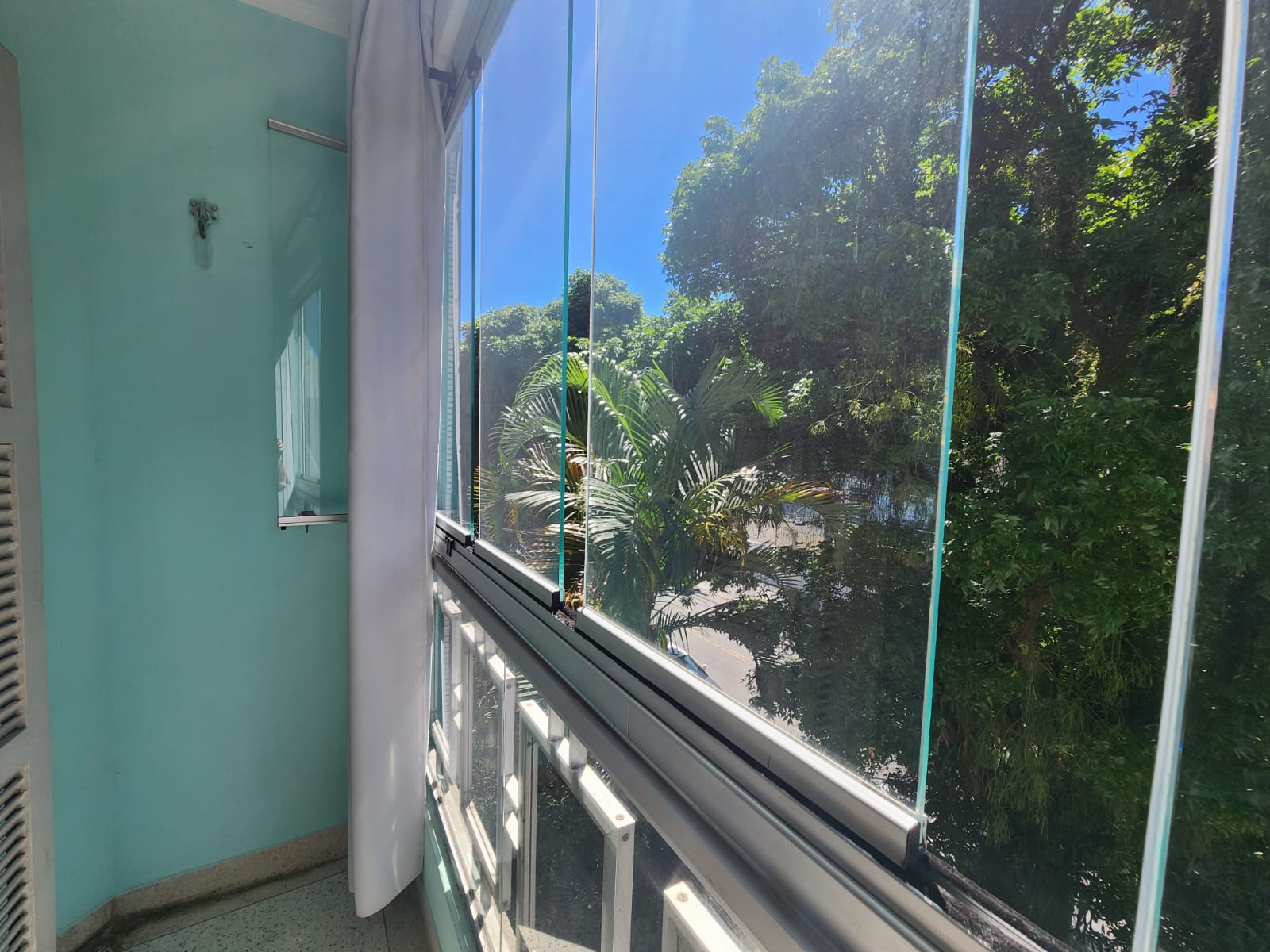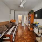 Sala para dois ambientes, três dormitórios sendo dois de frente um com suíte, banheiro social, cozinha com armários, área de serviço com banheiro, garagem coletiva suficiente, prédio de escada segundo andar de frente.
