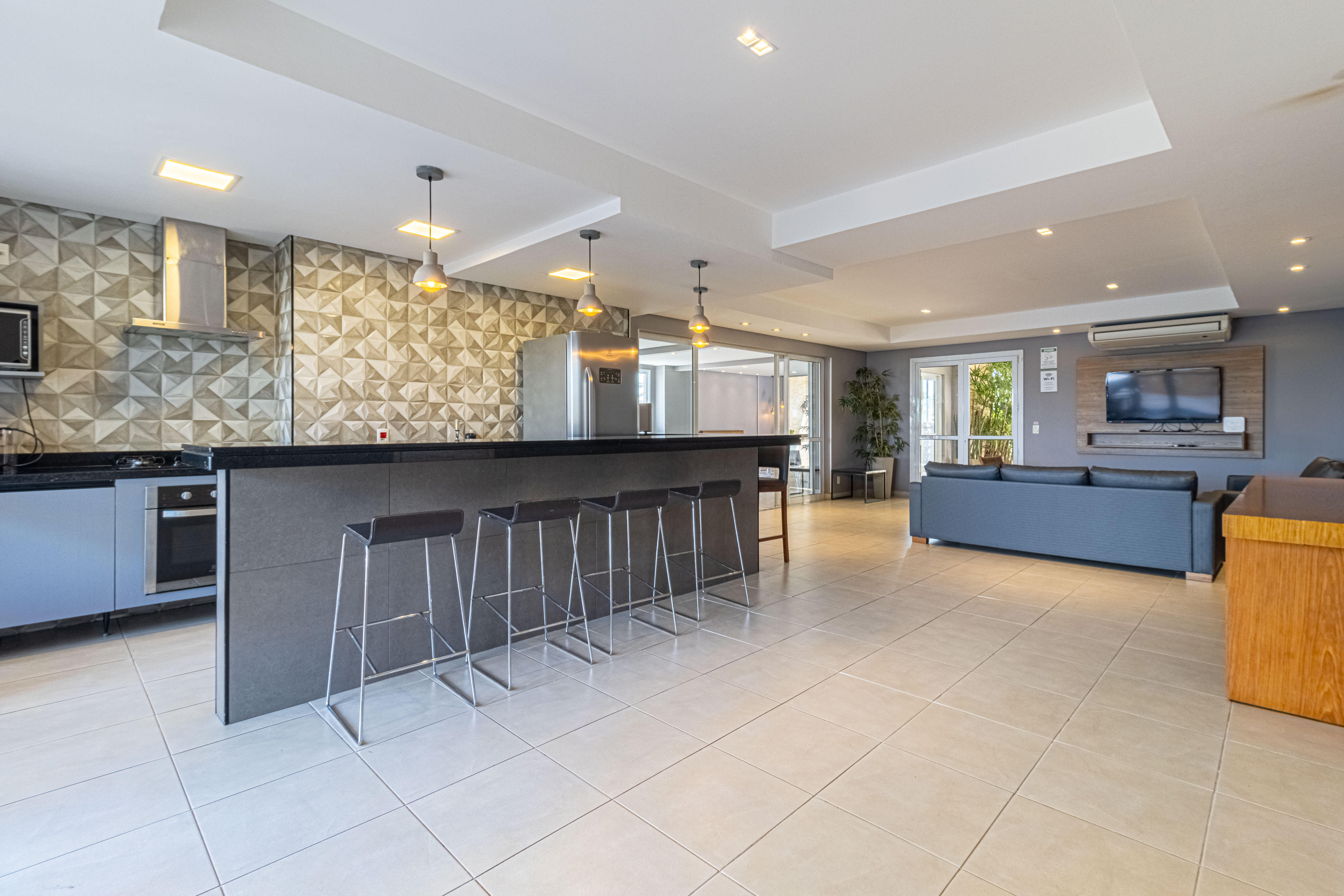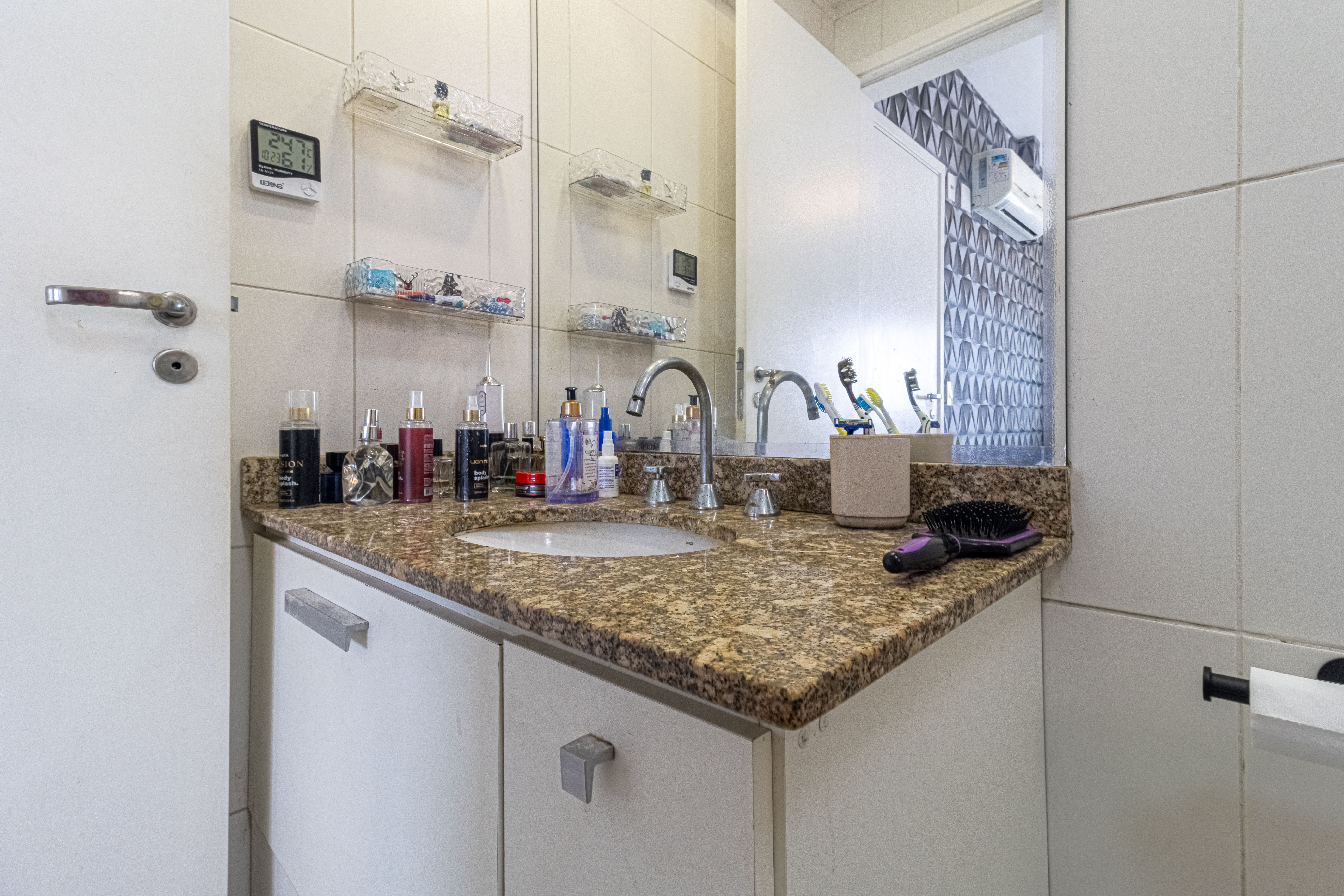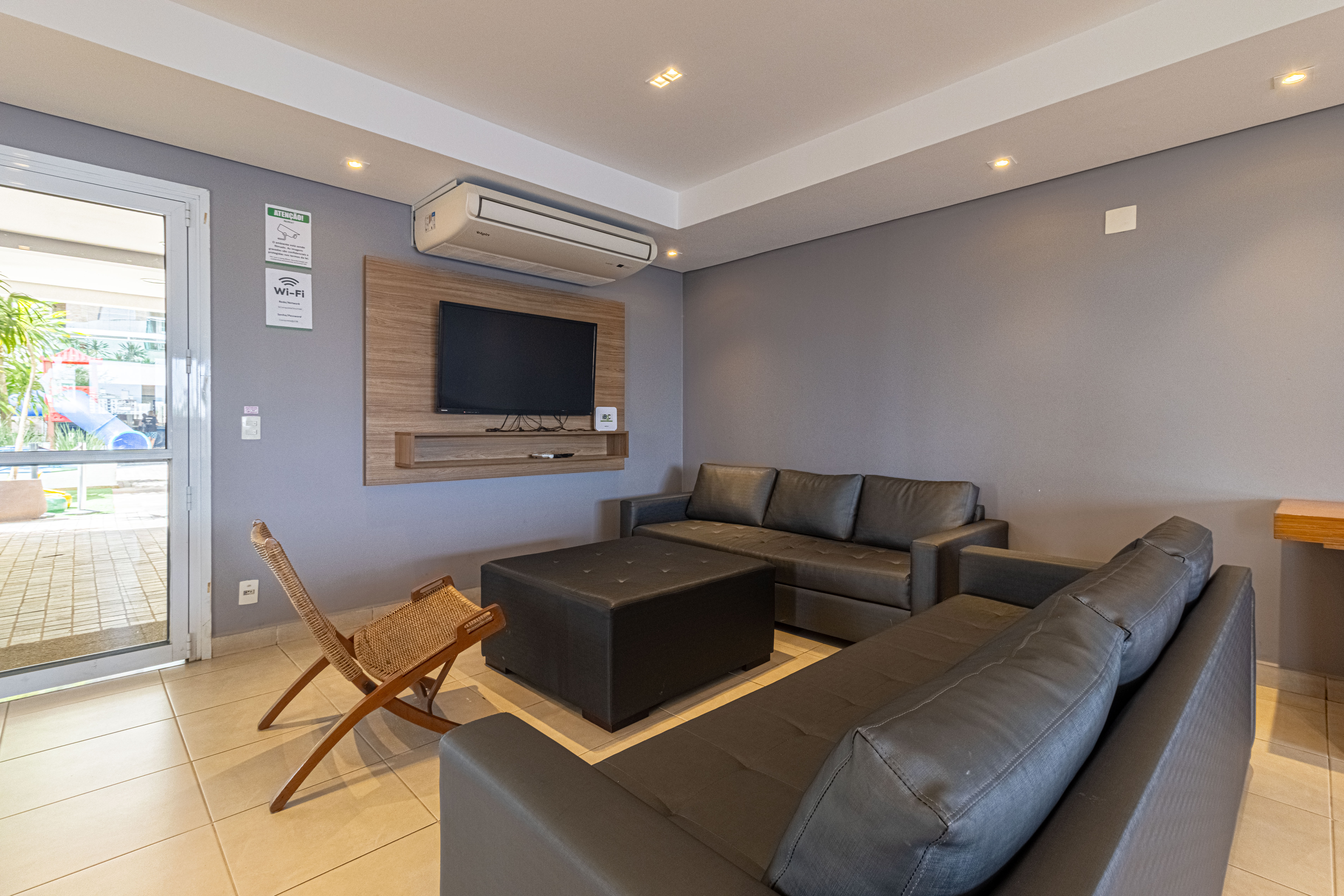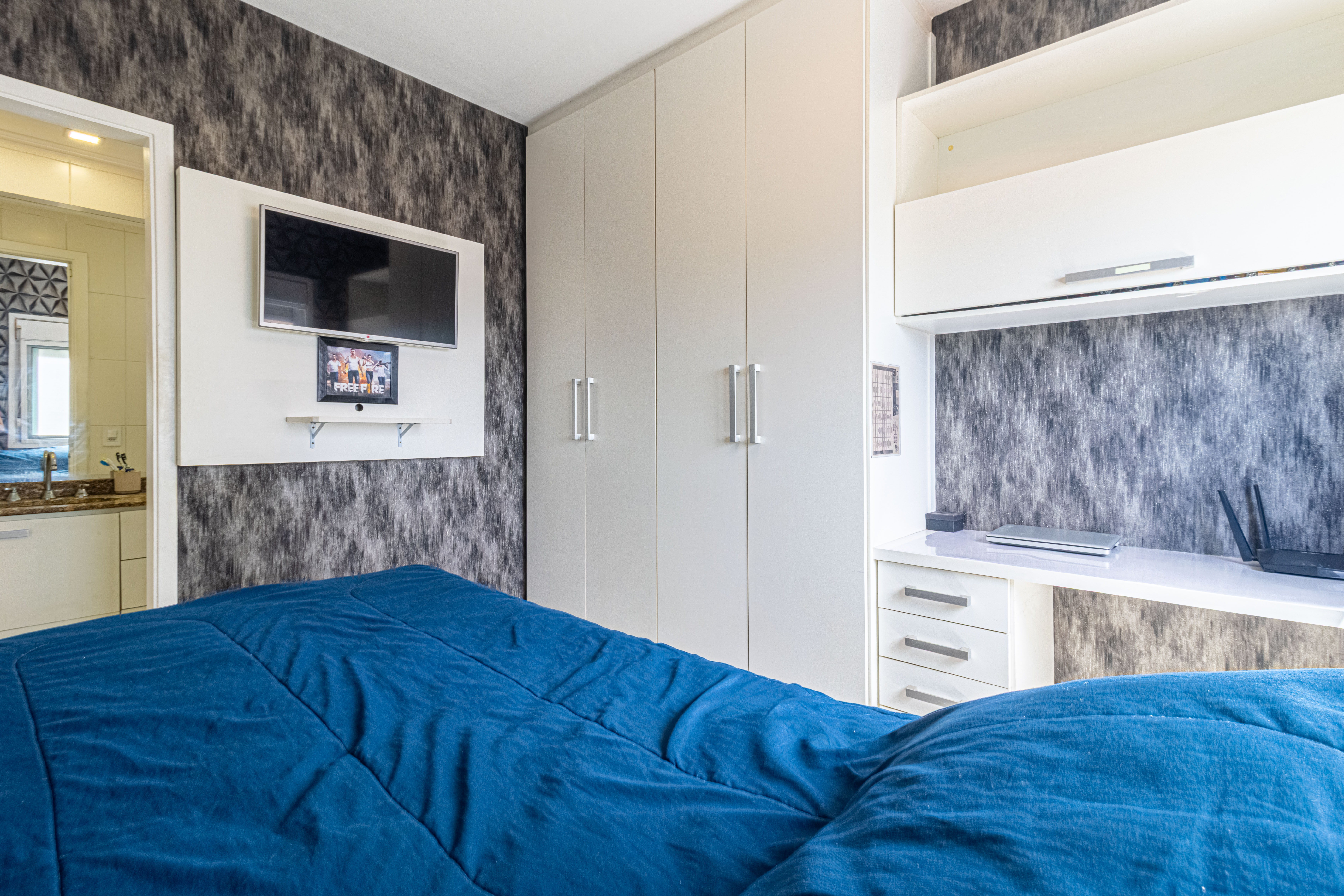 Três dormitórios sendo duas suítes, sala com ampla sacada com vista livre sol da manhã, todo decorado, rico em armários, ar condicionado nos ambientes, fechadura eletrônica, andar alto, duas vagas de garagem demarcadas, lazer completo.