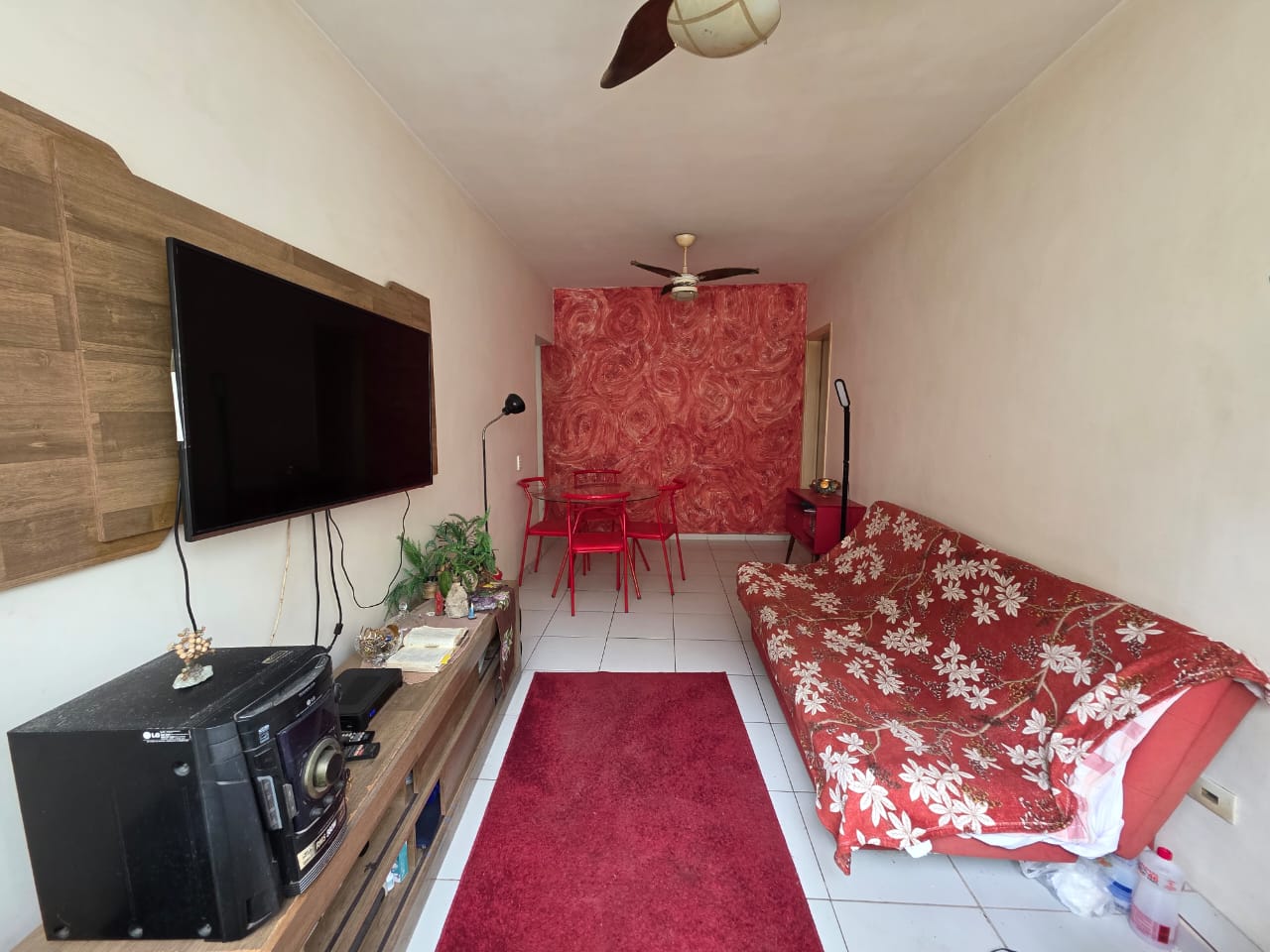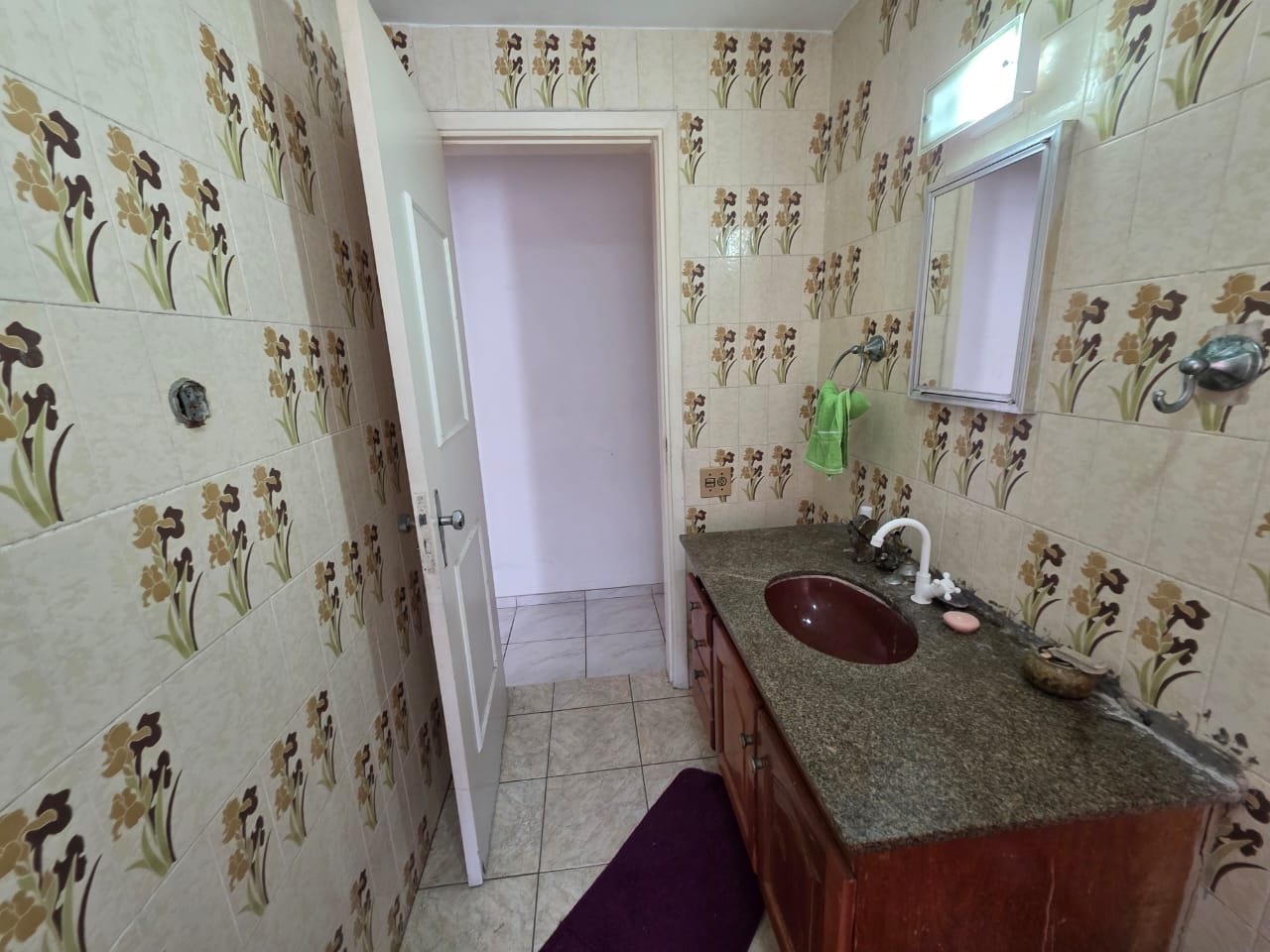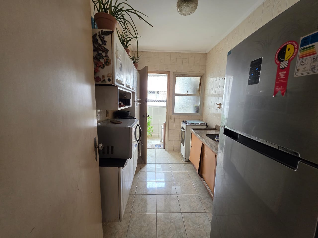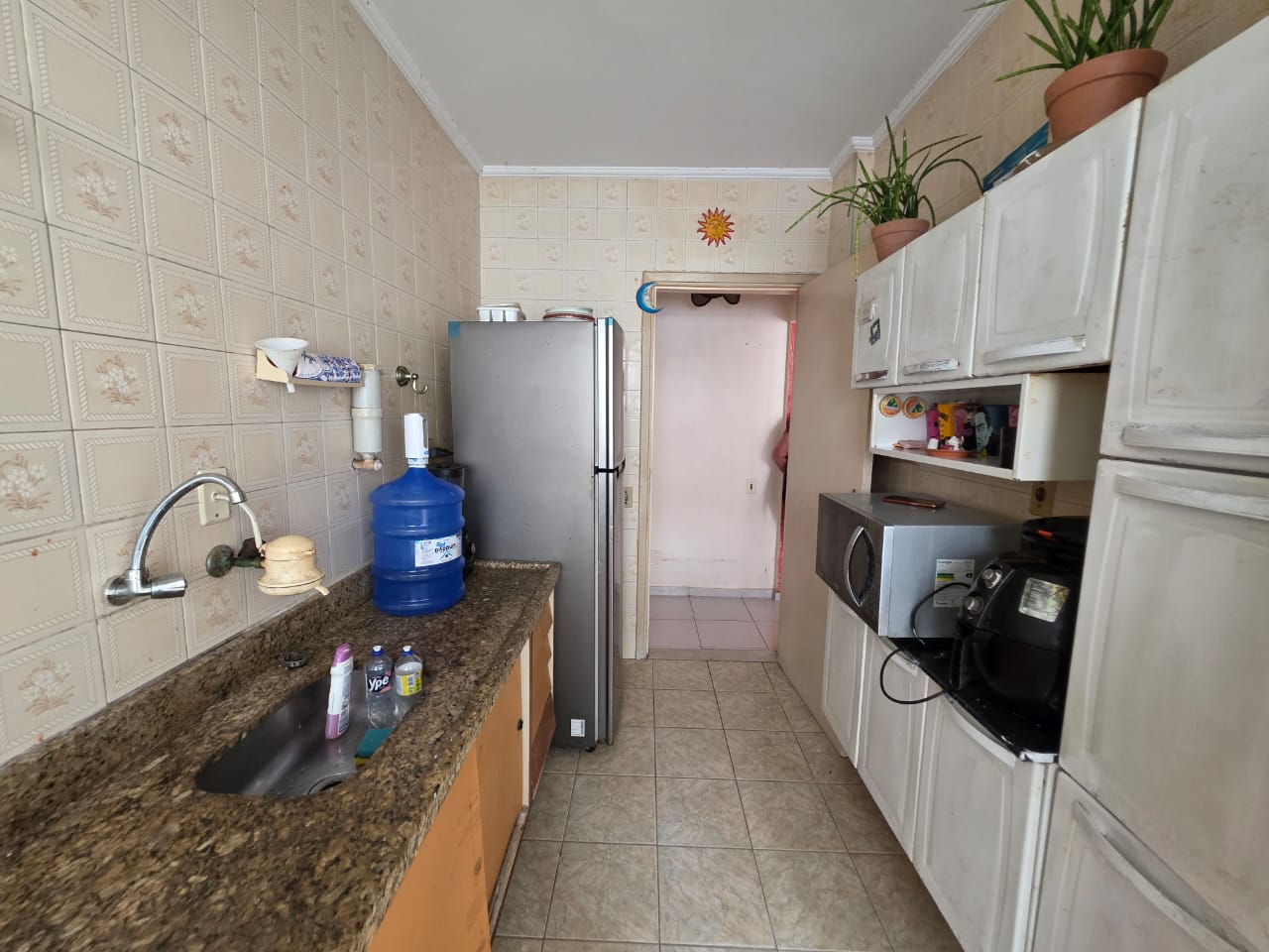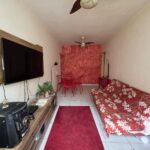 Sala para dois ambientes, dois dormitórios, banheiro social, cozinha, área de serviço com banheiro, garagem coletiva suficiente, vista lateral do mar.