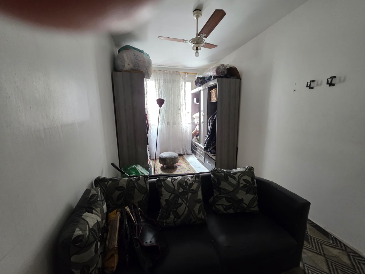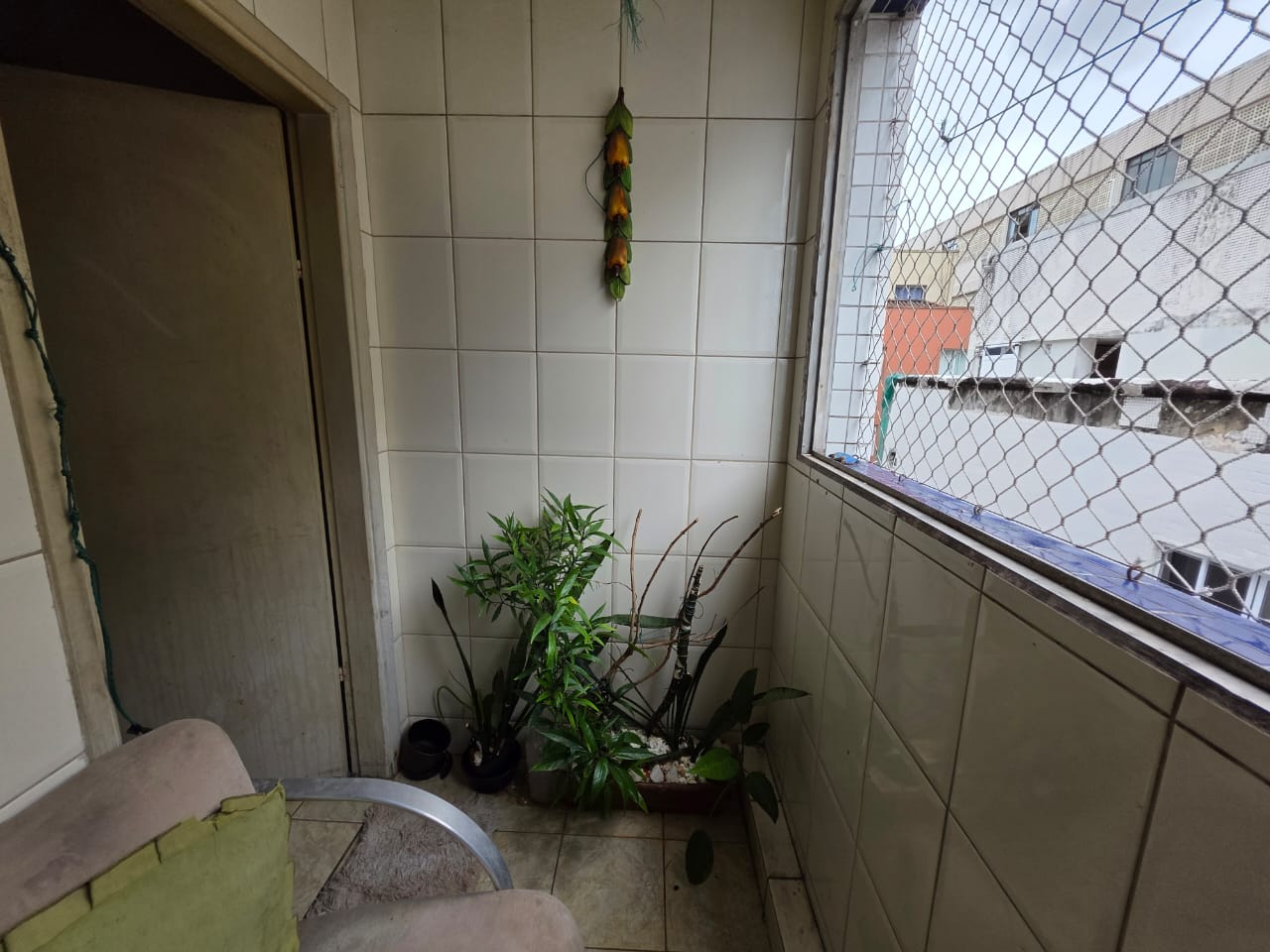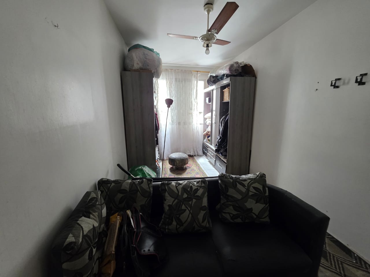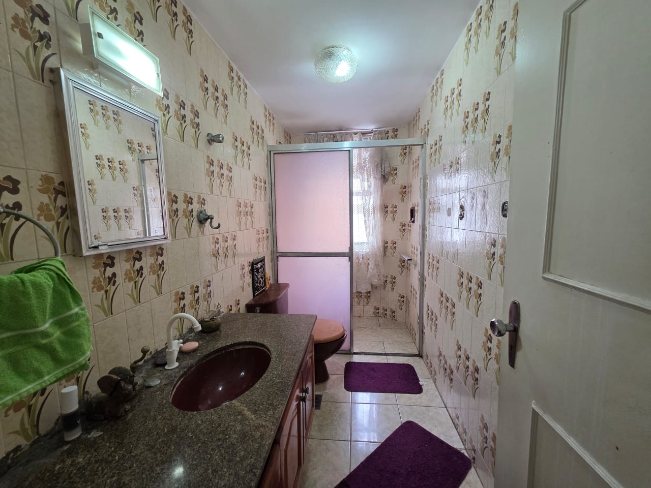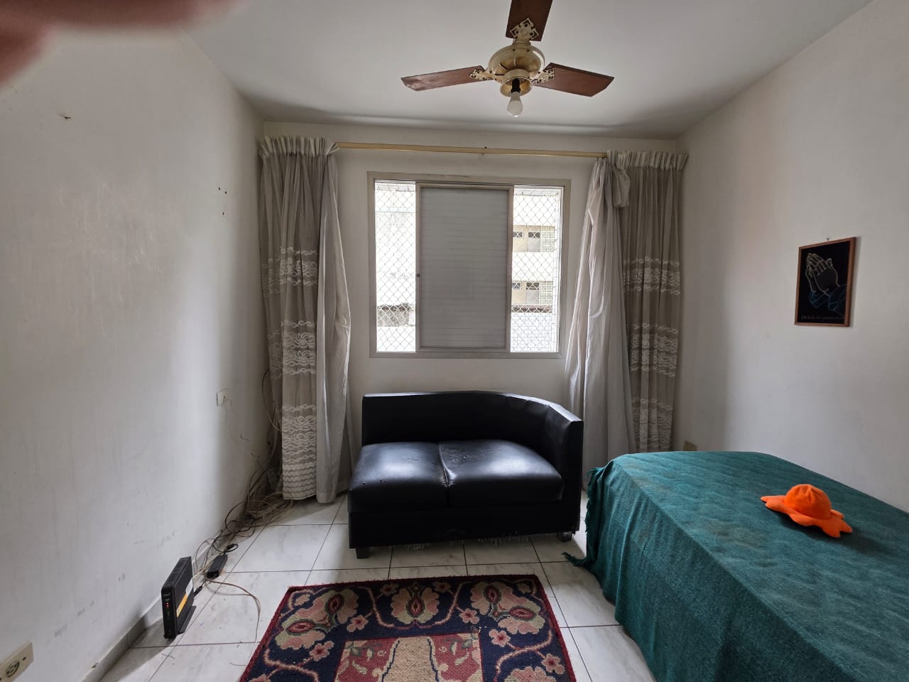 Sala para dois ambientes, dois dormitórios, banheiro social, cozinha, área de serviço com banheiro, garagem coletiva suficiente, vista lateral do mar.