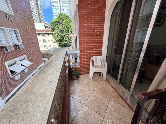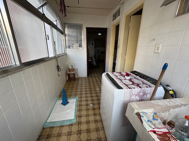 Sala ampla para dois ambientes com sacada, três dormitórios sendo um suíte, cozinha ampla, área de serviço e dependência completa, duas vagas de garagem uma demarcada no subsolo e uma coletiva no térreo. Prédio de elevador, portaria remota, piscina e salão de festas.