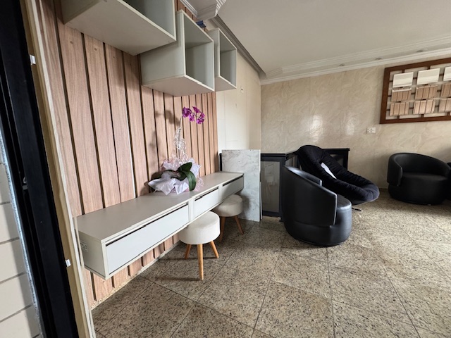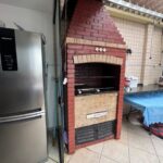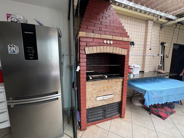 Andar superior: escada interna, sala com sacada, uma suíte, área gourmet com churrasqueira coberta, duas vagas demarcadas, elevador atende os dois andares, portaria durante o dia.